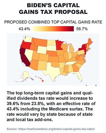 Biden’s plan nearly doubles the base top long-term capital gains rate, increasing the effective rate to 43.4%, including the Medicare surcharge.